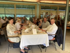 Nach dem Spiel, frisch geduscht, erwartete uns ein feines Mittagessen. Gazpacho, Roastbeef mit Tartarsauce und Pommes Frites und als krönender Abschluss Eiskaffee «Wylihof».